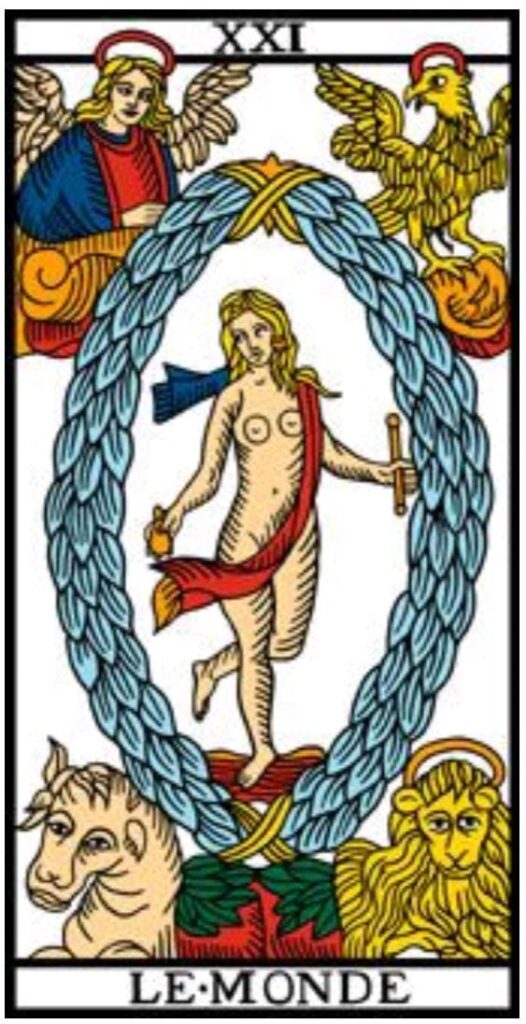 El Mundo es la culminación de la travesía. En la amistad, esta carta simboliza la realización, la plenitud y la celebración de un ciclo completo. Representa esas amistades que han crecido, madurado y se han convertido en una parte fundamental de lo que somos. El Mundo nos habla de la amistad que nos hace sentir completos, que nos ha ayudado a alcanzar nuestras metas y que nos da una sensación de pertenencia. También puede simbolizar la hermosa y a veces agridulce conclusión de una amistad, un final que se vive con gratitud por todo lo compartido, abriendo la puerta a nuevas conexiones.
