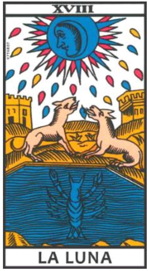 Aunque no es directamente una carta de «tristeza», La Luna nos sumerge en las profundidades de nuestras emociones inconscientes, miedos y verdades ocultas. A menudo, la tristeza se entrelaza con lo que no entendemos completamente, con lo que permanece velado en nuestra psique. La Luna nos invita a navegar por estas aguas turbias.